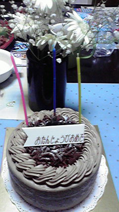 ロウソクを吹くのを楽しみにしていて(何故お前なのだ?)、飾りもかざってくれたのはいいけれど、すべてのロウソクは折れ(本数は気になさらず)、おめでとうの飾りの「とう」は既に食われている…のは気のせい?