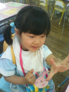ちゃんと先生のピアノに合わせ、動物のゼスチャーをしながら歌っていた。楽しく好きな事にはニコニコのハナである。