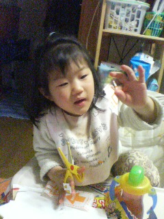 泣いた理由は、トイレに連れて行かれた後、パンツを履くのを嫌がったとか。気まぐれハナ、炸裂のもよう。(本人なりに理由はあるのでしょう。)