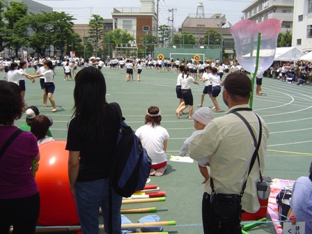 私は、ハナを子守しながら、時には高台でハナを抱っこしたまま観戦したりしていました。