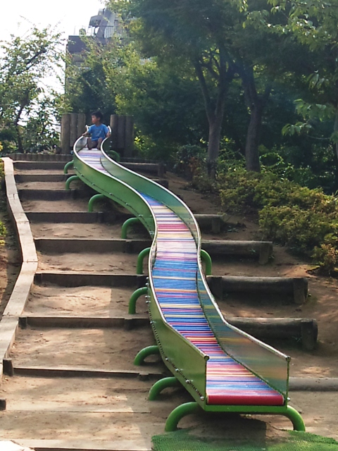 わりと近くに長い滑り台の公園がある事を知ったパパは、