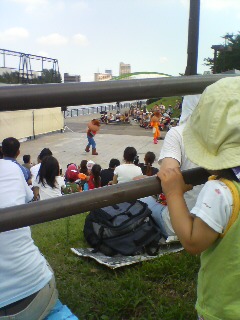 と手を振り叫び、唄に合わせてお尻を振ってました。(後ろから見たので)