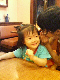 単に耳元で「コチョコチョコチョ」と呟くとハナが喜ぶので、お姉ちゃんが遊んでいる所です。