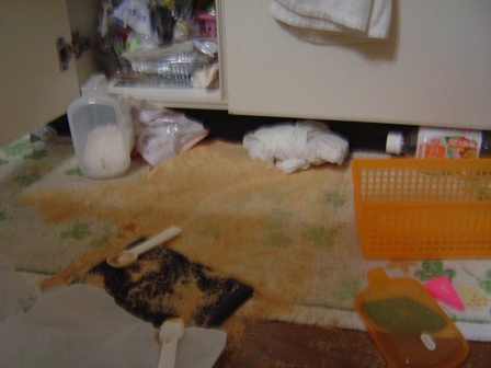 画像をクリックすると大きくなるので、悲惨な現場が良く分かります。現場でまだ何も手に触れていない状態。ハナがヤリタイ放題した直後でございます。