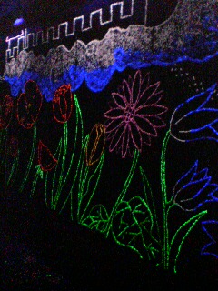 6色の蛍光石で町の子供達の絵を装飾してありました。